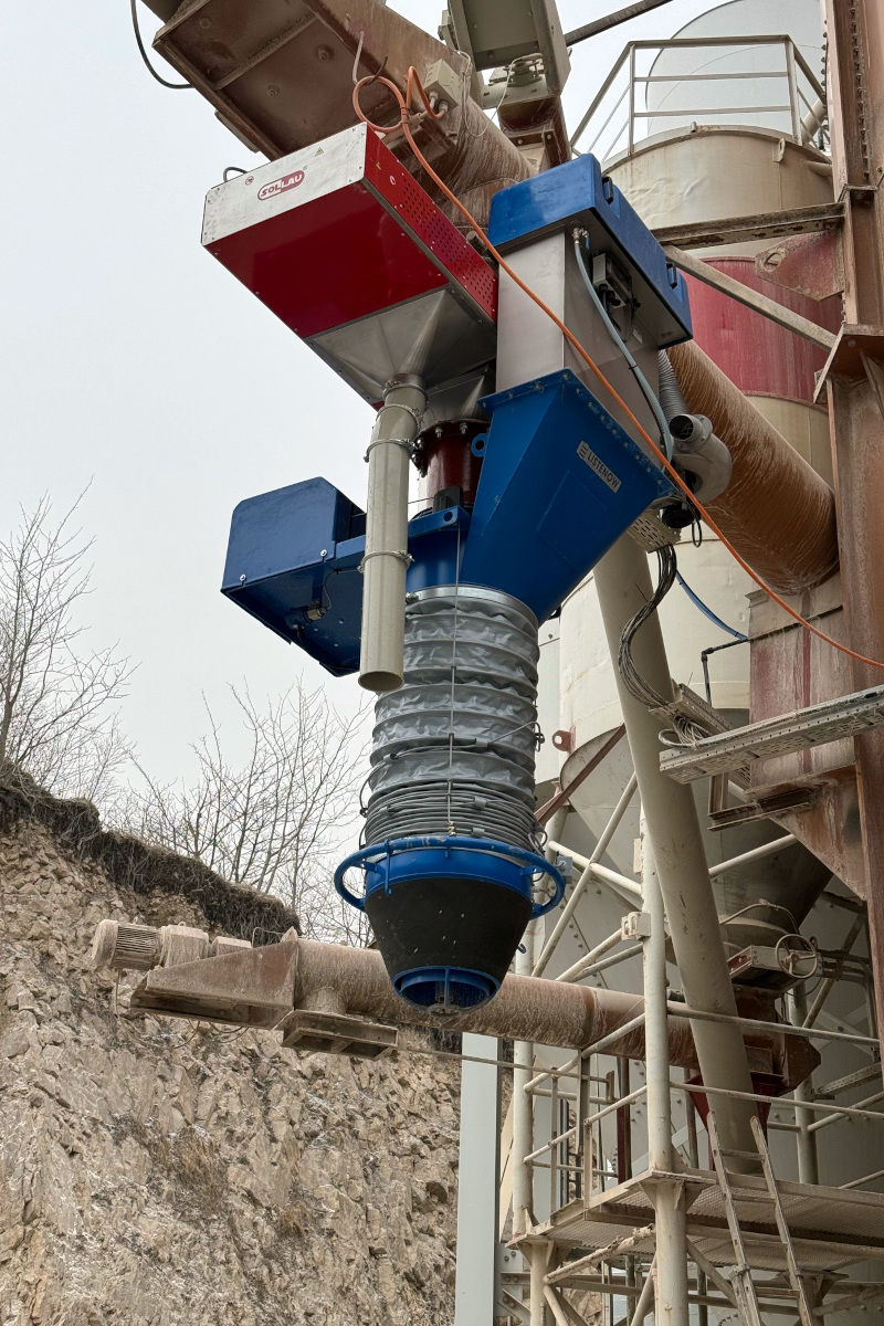 Egy német családi mészüzem, amely mészkőbányászattal és mészgyártással foglalkozik, problémát tapasztalt fémes és rozsdás részecskékkel a finom dolomit termékben (< 0,1 mm). Az anyagot csigás szállítószerkezettel továbbították; a teljes folyamatnak porzás miatt zárt rendszerben kellett zajlania, és a lehető legkisebb beépítési magasságot is tartani kellett.